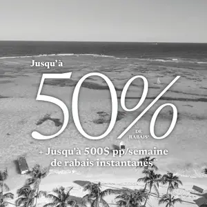 Québec Charlevoix, CanadaPunta Cana, République DominicaineMichès Playa Esmeralda, République DominicaineColumbus Isle, BahamasTurkoise, Turques & CaïquesLa Caravelle, GuadeloupeLes BoucaniersCefalu, SicileMarrakech La Palmeraie, MarocDa Balaia, PortugalGregolimano, GrèceMagna Marbella, EspagneKani, MaldivesSeychellesAfrique du Sud Plage & SafariLa Plantation d'Albion, Ile MauriceLa Pointe aux Canonniers, Ile MauriceBali, IndonésieCroisières tout-inclusCroisières tout-inclus Caraïbes