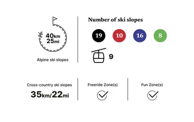 ❅ A large choice of runs (53) for all levels, as well as the most extensive off-piste skiing (98 acres)