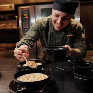 Plus de 65 % de nos produits frais sont sourcés localement. En priorisant les circuits courts, en proposant une diversité d’options végétariennes et en soutenant une agriculture aux pratiques durables, nous offrons des repas fraîchement préparés tout en réduisant notre empreinte carbone.